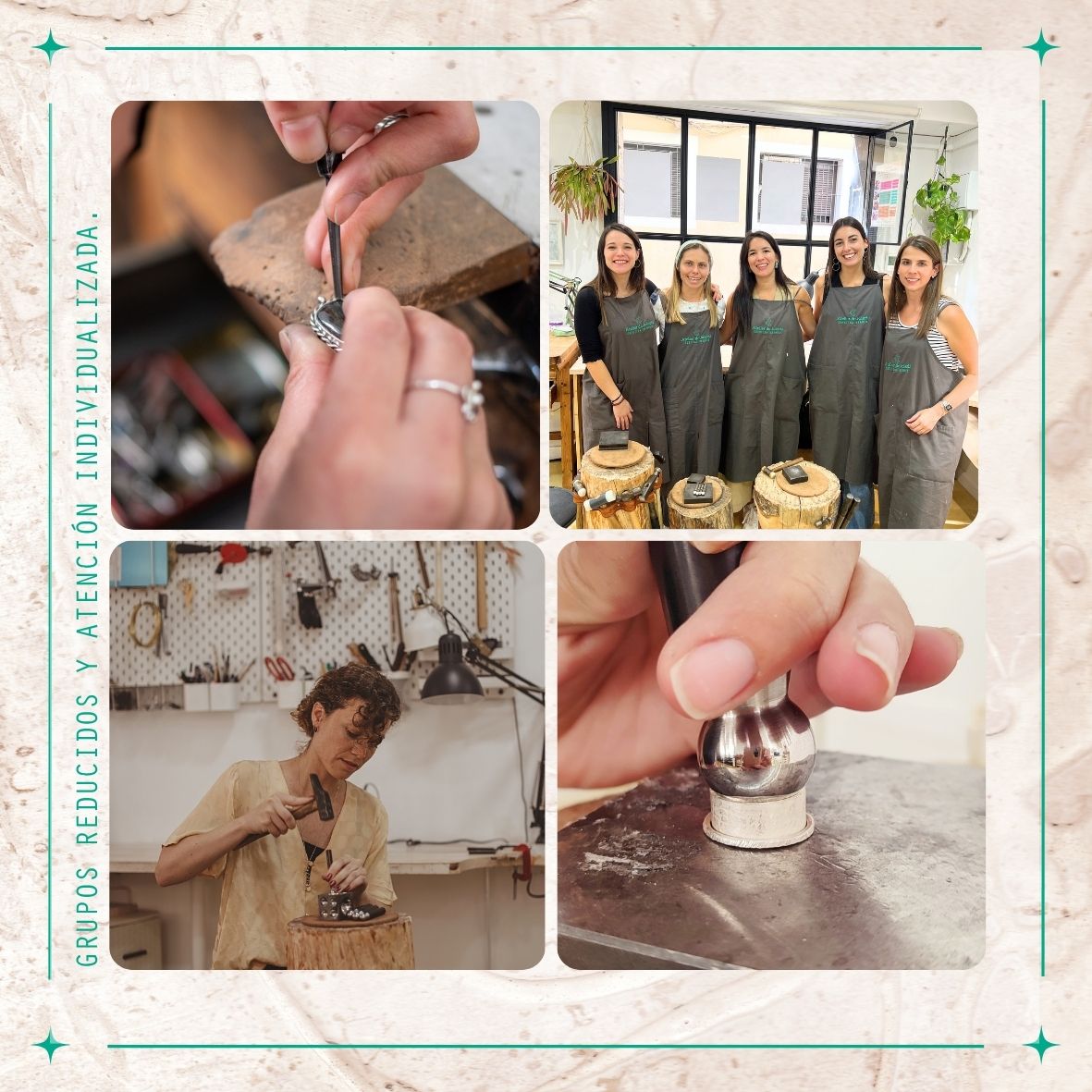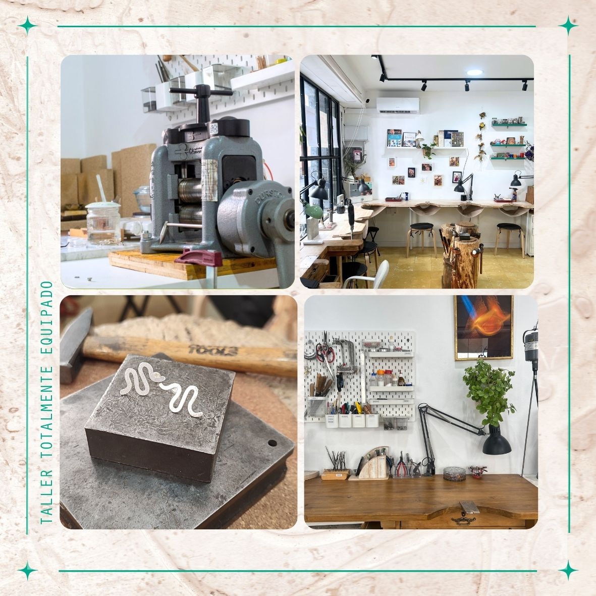 Aprenderás las técnicas básicas como la fundición y el laminado del metal, hasta técnicas avanzadas de la alta joyería o la técnica de engaste de piedras, depende del tiempo que decidas venir a las clases.